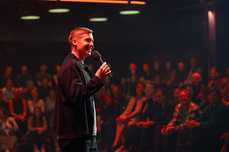 Gastgeber und Stand-Up-Comedian Till Reiners freut sich auf eine neue Ausgabe seiner "Happy Hour".