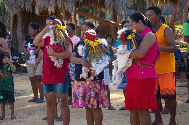 Für das Volk der Boe-Bororo sind die Aras heilig. Die gesammelten Federn sind ein wertvoller Besitz, der von Generation zu Generation weitergegeben wird.