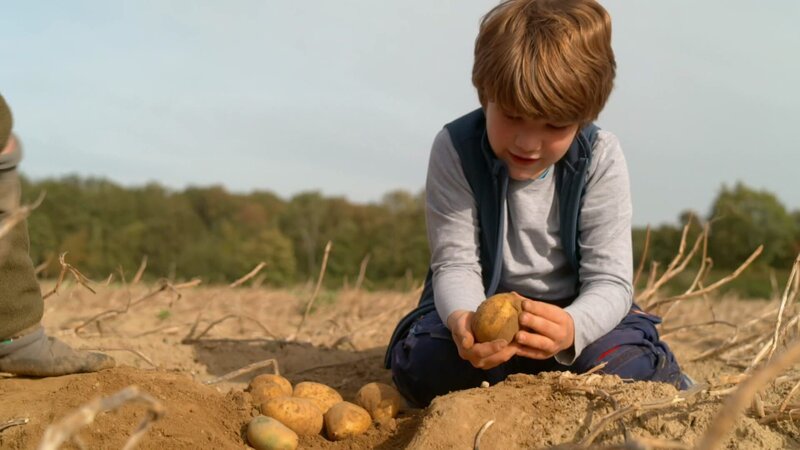 Wie kommt das Gemüse auf den Teller? Moritz findet heraus, wo Kartoffeln wachsen und wie sie geerntet werden. Auf einem Feld trifft er Jule, die ihm dort einen Kartoffelroder zeigt. In der Kita-Küche bereiten Kinder ein leckeres Essen für die Gruppe zu: Gemüse mit Kräuterquark. Und Kelly Ketchup alias Fritzi Haberlandt zeigt Anke, wie man Bananen-Brot macht. Mehr Obst- und Gemüse-Geschichten gibt es in dieser elefantastischen Folge.
