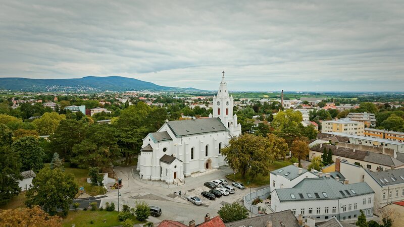• Pfarrkirche Bad Vöslau aus der Vogelperspektive.