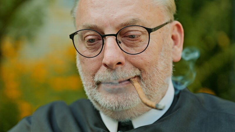 • Pater Stephan Holpfer beim Rauchen einer „Zigarre“.