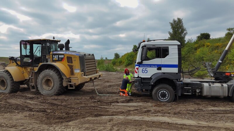 Sandfalle auf der Baustelle: Daniela steckt mit ihrem Kipper fest