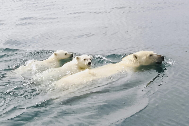 Eisbärenmutter mit Jungtieren auf einer Eisscholle