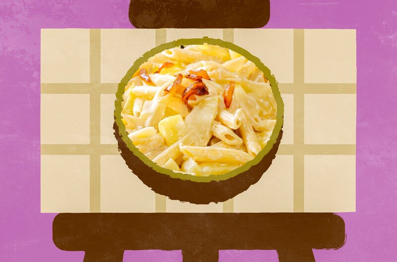 Älplermagronen sind ein Schweizer Gericht, das mit Nudeln, Kartoffeln und reichlich Käse zubereitet und mit Apfelmus serviert wird.