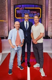 V.l.n.r.: Rateteamkapitän Bernhard Hoëcker, Moderator Kai Pflaume und Wotan Wilke Möring.Bild: © ARD/MORRIS/Thomas Leidig/Marc Rehbeck/Morris Mac Matzen/Artwork BDA