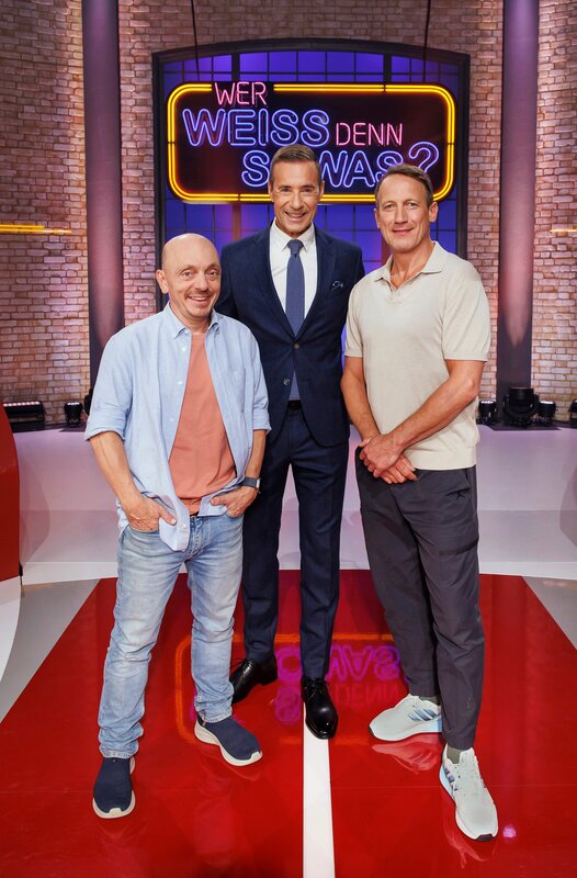 V.l.n.r.: Teamkapitän Bernhard Hoëcker, der neue Teamkapitän Wotan Wilke Möring und Moderator Kai Pflaume.Bild: © ARD/Morris Mac Matzen / ARD-Programmdirektion