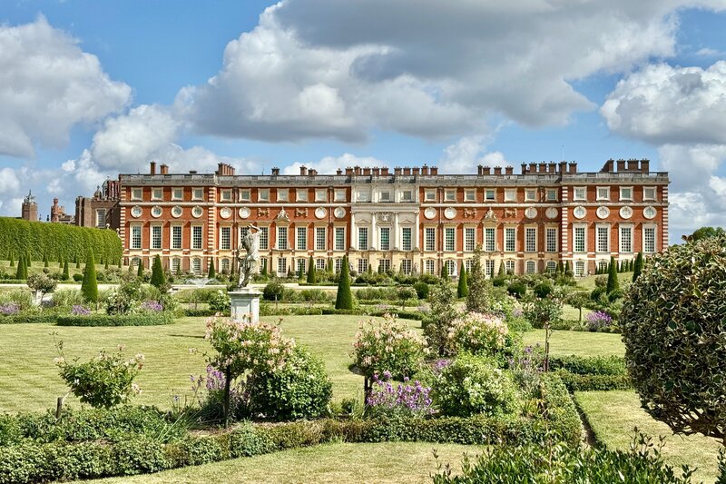 Hampton Court zählt zu den bedeutendsten royalen Residenzen in der Geschichte Englands. Der weitläufige Palast mit seinen 330 Hektar Garten- und Parkanlagen erzählt eine Geschichte von Macht und Vergänglichkeit. Dort begegnen einander die Epochen - von der roten Backsteinarchitektur der Tudors über die barocken Fassaden Wilhelms III. und Maria II. bis hin zu den viktorianischen Gartenrestaurierungen.