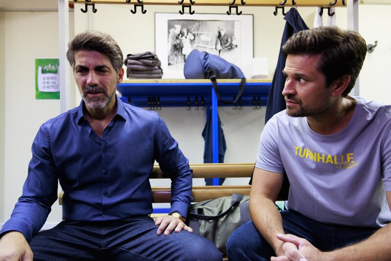 Ferhat (Harun Yildirim, l.) erkennt, dass die Intrige nicht zu Ute passt. Rechts Paco (Milos Vukovic).