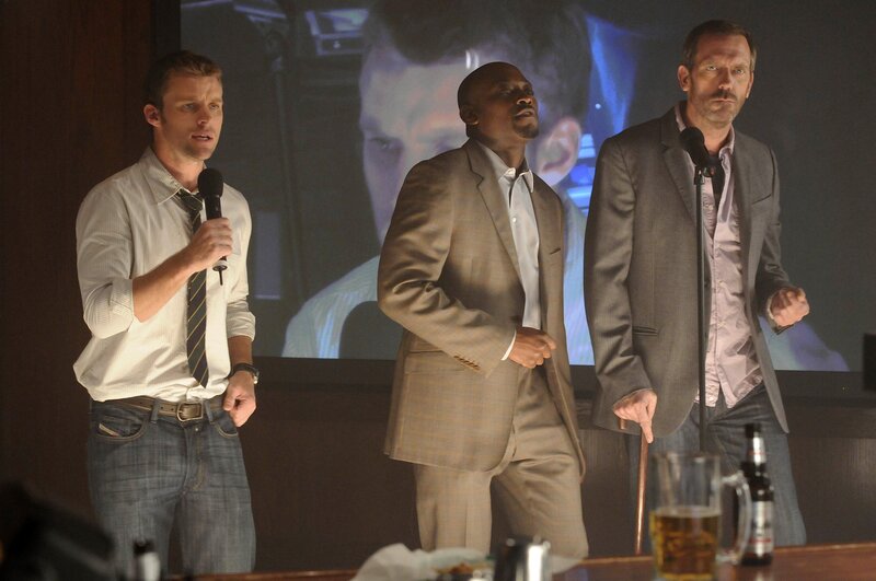 • Dr. Chase (Jesse Spencer, l.) und Dr. Foreman (Omar Epps, M.) besuchen mit House (Hugh Laurie) eine Karaoke-Bar und performen "Midnight Train To Georgia".