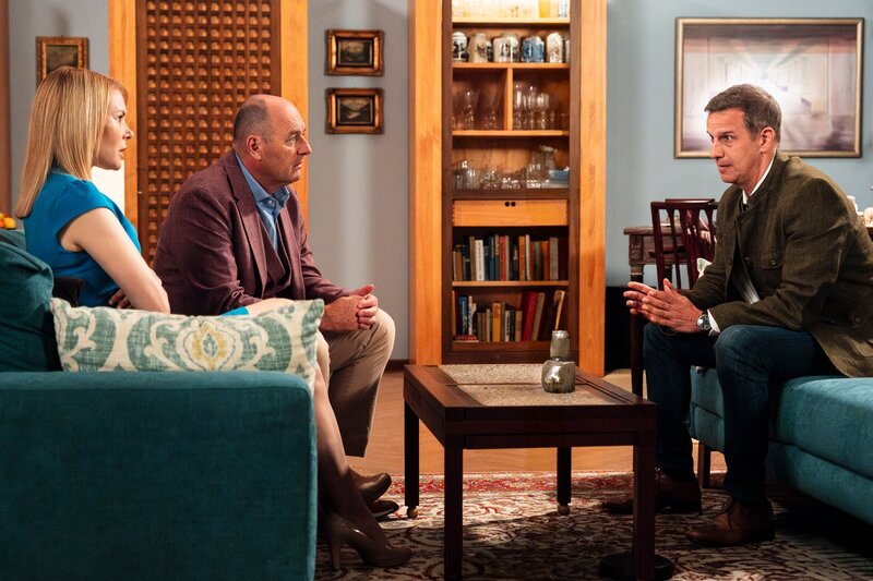 Uschi (Silke Popp) sucht nach Worten, während Hubert (Bernhard Ulrich) beginnt, Winklers Behauptung, Uschi habe ihn missverstanden, zu glauben.