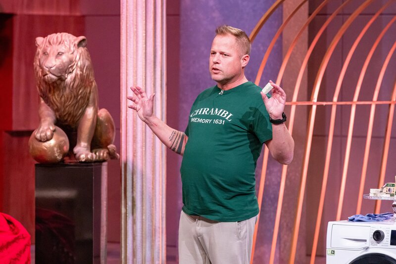 Christian Miele, Gastlöwe und Urenkel des Miele-Gründers, begegnet im Staffelfinale Alexander Kraml. Dieser sorgt mit seinem prunkvollen Auftritt und dem nachhaltigen Multiwaschwürfel Chrambl im Teebeutel für Gesprächsstoff.