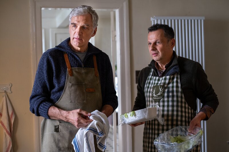• Robert Anders (Walter Sittler, li) und Hannes Buck (Gerhardt Wittmann, r.) sind zusammen in der Küche.