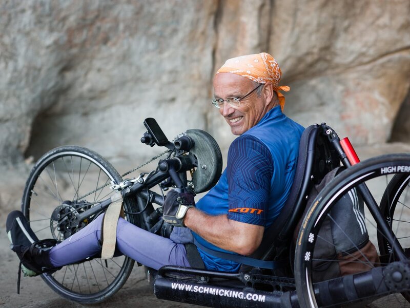 Veit Riffer liebt Sport und die Sächsische Schweiz. Damit alle seine "Felsenheimat" entdecken können, testet der querschnittgelähmte Pirnaer Wander- und Handbike-Touren für mobilitätseingeschränkte Menschen. Er ist nach einem Unfall selbst querschnittsgelähmt. "Mein Leben ist durch den Unfall nicht schlechter geworden, vielleicht sogar spannender", meint Veit. Er hat fast alle Alpenpässe über 2000 Meter mit dem Handbike erklommen und Extremtouren absolviert.