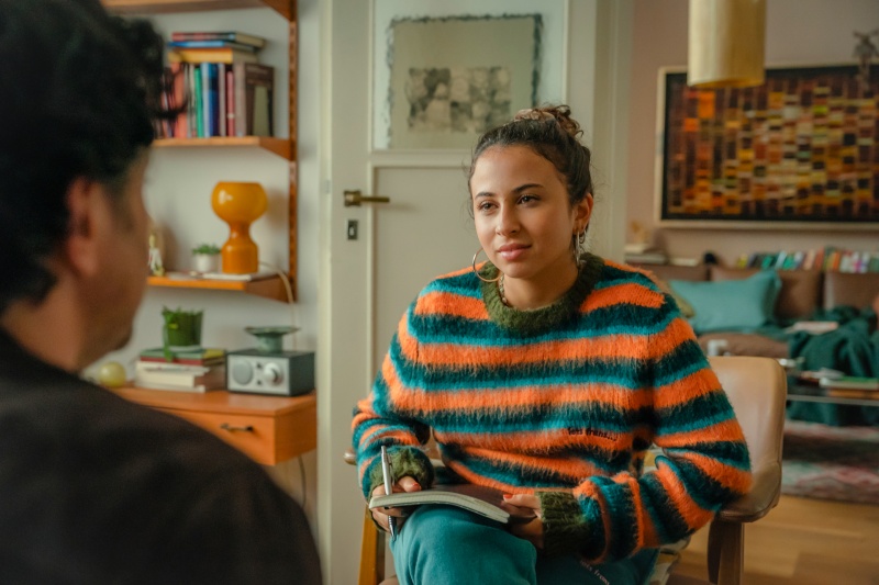Kim (Marleen Lohse) hört aufmerksam zu