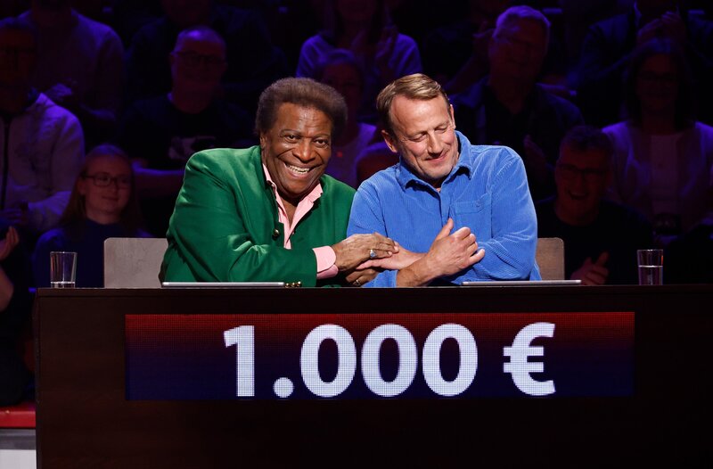 Rateteam-Kapitän Wotan Wilke Möhring (r.) mit dem Schlagersänger, Schauspieler und Unterhaltungskünstler Roberto Blanco (l.).Bild: © ARD/NDR/UFA SHOW & FACTUAL/Morris Mac Matzen Rateteam-Kapitän Wotan Wilke Möhring (r.) mit dem Schlagersänger, Schauspieler und Unterhaltungskünstler Roberto Blanco (l.).Bild: © ARD/NDR/UFA SHOW & FACTUAL/Morris Mac Matzen