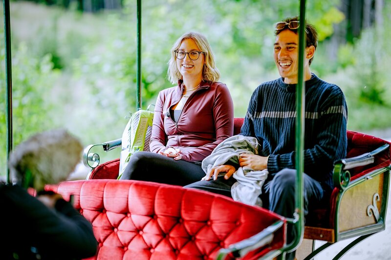 Kandidatin Elli und Single Pablo werden durch die Ramsau kutschiert.