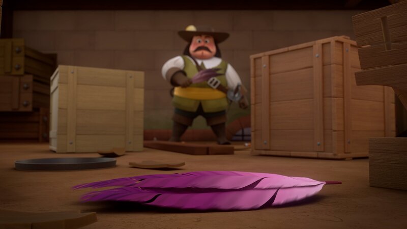 Mithilfe eines legendären Federbuschs, dessen Träger unbesiegbar wird, will König Adhemar Frankreich einnehmen. Dank Alex' Hinweis können die Musketiere verhindern, dass er ihn bekommt. Louis XIII vertraut d'Artagnan den Federbusch an, damit sie die Musketiere anführen und König Adhemar fangen kann. D'Artagnan prescht ungestüm vor und der Feind entkommt zunächst mitsamt Federbusch. In letzter Sekunde lenkt d'Artagnan ein.