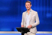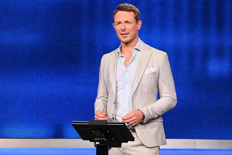 Moderator Alexander Bommes (2.v.l.) mit den Kandidat:innen: Lion Koch (3.v.r.), Stephanie Papenfuß (2.v.r.), Melina Aboulfalah (r.), Lukas Danner (l.).Bild: © ARD/Uwe Ernst