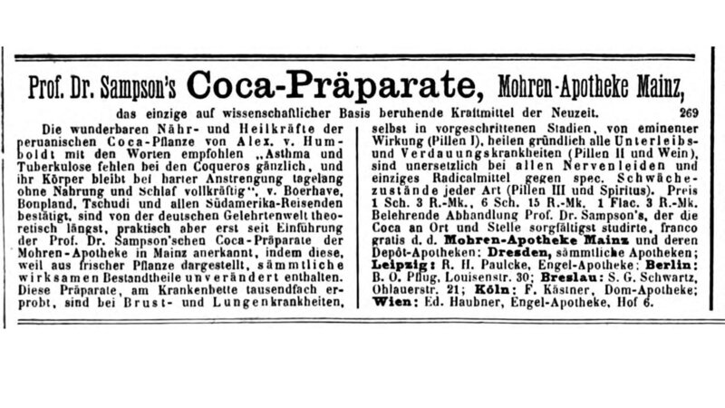 • Historisches Inserat für Coca-Präparate (Kokain).