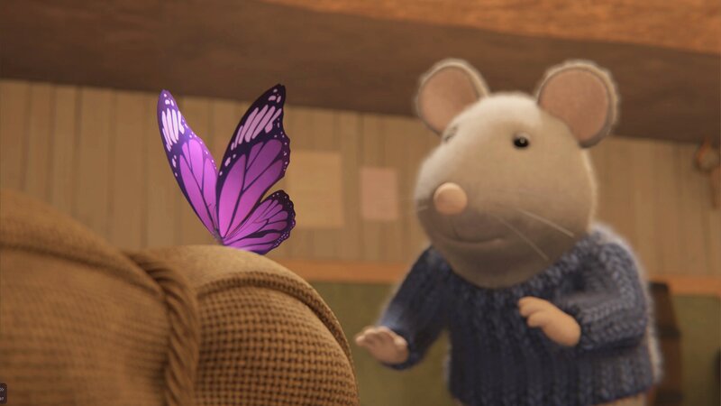 • Ein Schmetterling hat sich ins Mäusehaus verirrt. Sam möchte ihm helfen, wieder herauszufinden.
