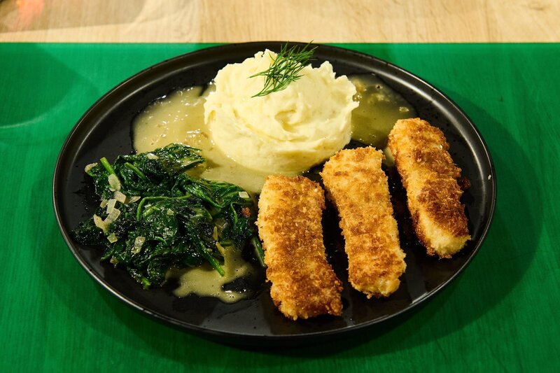Tagesmotto "Kindheitserinnerungen": Fischstäbchen 2.0 mit Zitronengras-Beurre-blanc, Spinat und Kartoffelpüree von Nico RoszykiewiczBild: © ZDF und Gunnar Nicolaus