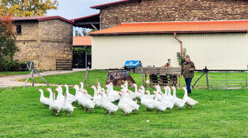 Die Gänse folgen Landwirtin Kerstin Fischer aufs WortBild: © MDR/Mathias Schaefer