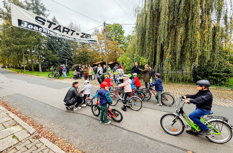 n Erinnerung an Joachim Giebler findet ein Radrennen statt. Der ehemalige Bürgermeister hatte es in der DDR als Kleine Friedensfahrt organisiert.Bild: © MDR/Frank Stuckatz