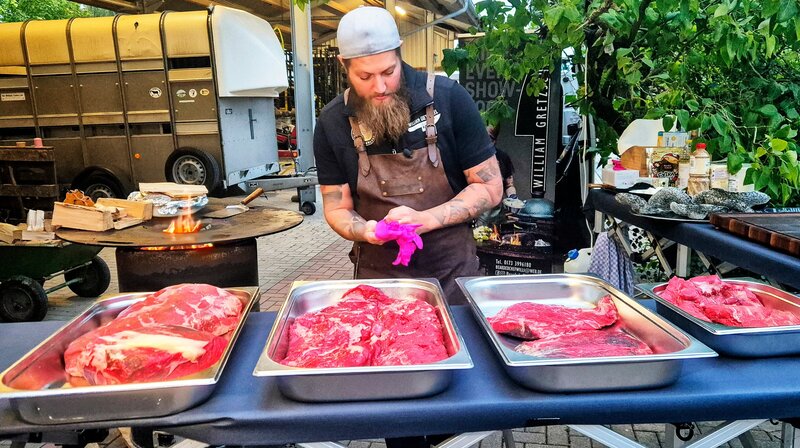 Auf dem Hof grillt der ausgebildete Fleisch-Sommelier ein 6-Gänge-MenüBild: © MDR/Mathias Schaefer