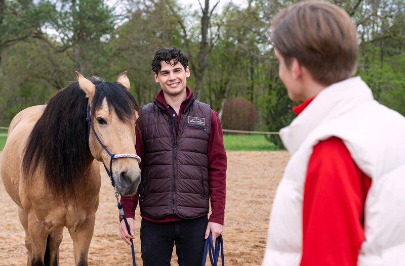 Elias (Orlando Lenzen, l.) begreift belustigt, dass Leo (Aurel Klug, r.) Angst vor Pferden hat.