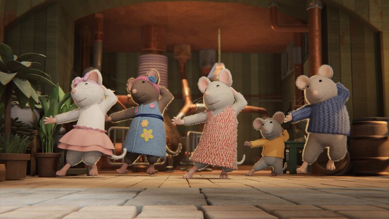 Sie tanzt fröhlich durchs Mäusehaus und animiert auch die anderen Bewohner zum Tanzen.