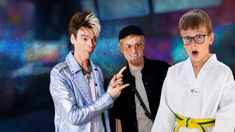 • Na, erkannt? Bei "Magic Pranks - Ausgetrickst mit den Ehrlich Brothers" verkleidet sich Andreas Ehrlich (M.) für einen Undercover Prank beim Taekwondo. Der 9-jährige Taylan (r.) möchte dabei seinen Trainer Nils reinlegen. Chris Ehrlich (l.) ist gespannt.