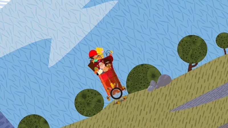 Mia will auf einen Berg klettern - mit Opa. Aber der mag nicht klettern. Also baut Mia aus der roten Tonne eine AUFDENBERGKLETTERMASCHINE. Weil man auf so einer Bergtour nicht gern allein ist, nimmt Mia Opa, Mama, das Baby Schniefsi und den Schrank und Essen und Trinken mit. Aber für die Maschine ist der Berg zu steil, die Last zu schwer - Mia schafft es aber doch, auf den Gipfel zu gelangen - nur fühlt sie sich dort am Ende sehr alleine. Rückwärts!