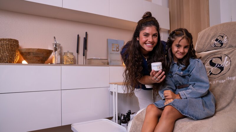 Jeannie (l.) hilft heute als "Ehrlich Brothers Prank Komplizin" der 8-jährigen Sara (r.). Gemeinsam spielen sie einen Streich im Kosmetikstudio.