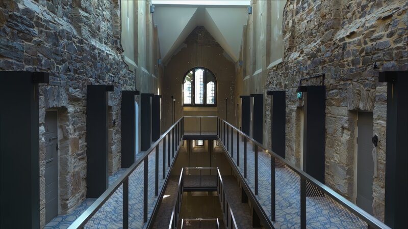 • Für jedes Zimmer wurden drei der ursprünglichen Gefängniszellen per Wanddurchbruch miteinander verbunden.