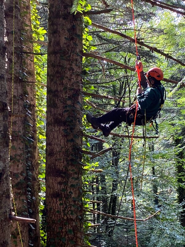 Zapfenpflücker klettern vierzig Meter hoch in die Wipfel der Nordmanntannen