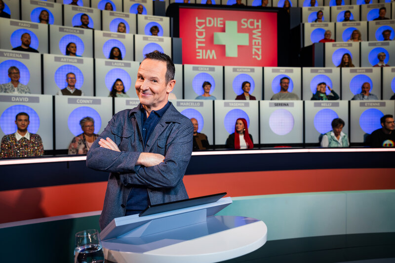Claudio Zuccolini führt auch in der vierten Ausgabe von «Wie tickt die Schweiz?» der Schweizer Bevölkerung auf den Zahn. 100 Menschen geben Einblicke in ihre Haltung zu gesellschafts- und alltagsrelevanten Themen, während drei prominente Zweierteams versuchen zu erraten, wie geantwortet wird.