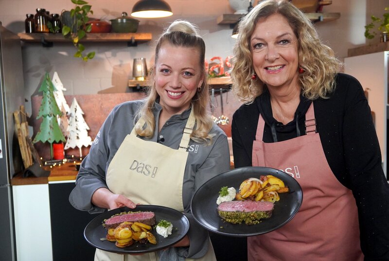Die Feiertage stehen vor der Tür, doch das festliche Menü ist noch nicht final? Kein Problem! Fernsehköchin Zora Klipp und NDR Moderatorin Bettina Tietjen präsentieren köstliche Weihnachtsgerichte, die ohne großen Aufwand gelingen und zu denen man die Zutaten sogar noch kurzfristig besorgen kann. Bunter Salat mit Kräutervinaigrette und gebratenen Garnelen Auch wenn es draußen kalt ist, braucht man auf frisch zubereitete Salate nicht verzichten. Saison haben beispielsweise Feldsalat, Chicorée, Endivie oder Winter-Portulak. Diese Mischung aus milden und feinherben Blattsalatsorten bilden die Basis für eine festliche und gleichzeitig gesunde Vorspeise in der Weihnachtsküche von Zora und Bettina. Hinzu kommt noch eine Salatspezialität, die ihren Ursprung in Italien hat: Radicchio. Die weinroten bis violetten Salatköpfe punkten mit feinherben Bitterstoffen und bringen zudem Farbe in die Salatschüssel. Für die Vinaigrette verrät Bettina Tietjen ihr liebstes Salatsoßenrezept. Dafür wird Himbeeressig mit Zitronensaft, Gemüsebrühe und Olivenöl verrührt und mit Ingwer, Knoblauch und Muskatnuss gewürzt. Hinzu kommen reichlich frische Kräuter wie Petersilie, Kerbel, Basilikum und Koriander. Zum Salat gibt es frisch gebratene Garnelen und reichlich Tipps für die perfekte Zubereitung der edlen und beliebten Meeresfrüchte. Garnelen garen beispielsweise extrem schnell. Eine lange Garzeit und falsche Hitze können zudem die Konsistenz und den Geschmack negativ beeinflussen. Roastbeef mit Bratkartoffeln und Remouladensoße Roastbeef ist ein Klassiker, der immer gut ankommt und mit wenigen Handgriffen für viele Genussmomente sorgt. Im "DAS! Kochstudio" wird der edle Braten mit einer würzigen Kruste aus Walnüssen und Kräutern wie Petersilie, Kerbel und Schnittlauch zubereitet. Zu den Gewürzen der Kruste gehören außerdem Zitronenschalenabrieb und Honig. Letzteres sorgt beim Garen im Ofen für eine feine Karamellnote. Damit das teure Stück Fleisch zart, saftig und aromatisch wird, lohnt es sich, die Zubereitung gut zu planen. Köchin Zora Klipp empfiehlt, das Fleisch vor dem Braten bei Raumtemperatur ruhen zu lassen und nach dem Anbraten im Ofen bei 120° C zu garen. Dadurch wird der Fleischkern besonders saftig und gleichmäßig rosa. Vor dem Anschneiden sollte man das Roastbeef außerdem etwas ruhen lassen, so kann sich der Fleischsaft gleichmäßig verteilen. Roastbeef und Remouladensoße, das passt perfekt zusammen. Der cremige Dip ist schnell zubereitet und schmeckt selbst gemacht besser als jedes Fertigprodukt. Zora und Bettina schlagen dafür Milch und Pflanzenöl zu einer Mayonnaise auf. Die Mayonnaise wird mit Schmand vermengt und anschließend mit Gewürzgurken, Kapern, Kräutern und Senf abgeschmeckt. Knusprige Bratkartoffeln dürfen bei Roastbeef ebenfalls nicht fehlen. Zoras Tipps: festkochende Kartoffeln am Vortag kochen und auskühlen lassen. So lassen sie sich besser in gleichmäßige Scheiben schneiden und behalten ihre Form beim Braten. Am Vortag kochen spart außerdem Zeit: Am Tag des Servierens müssen die Kartoffeln nur noch knusprig gebraten werden. Ein perfektes Gericht für entspannte Feiertage und Zeit für die Gäste. Die Remouladensoße lässt sich ebenfalls gut vorbereiten. Und für die Zubereitung des Roastbeefs muss niemand lange in der Küche stehen. Der Ofen macht dabei schließlich die Hauptarbeit.