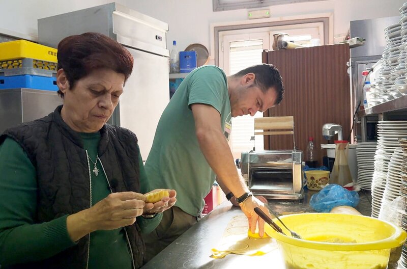Die Köchin Penelope Stavrakakis bereitet das Ostergericht Kalitsounia in ihrer traditionellen Taverne zu.