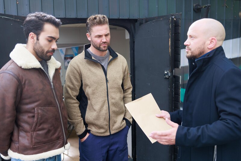Baris (Metehan Demiröz), Bambi (Ben Heinrich), Daniel Hemstedt (Max Florian Hoppe); Baris fürchtet, trotz erfüllter Mission nicht zu Cecilia reisen zu dürfen.