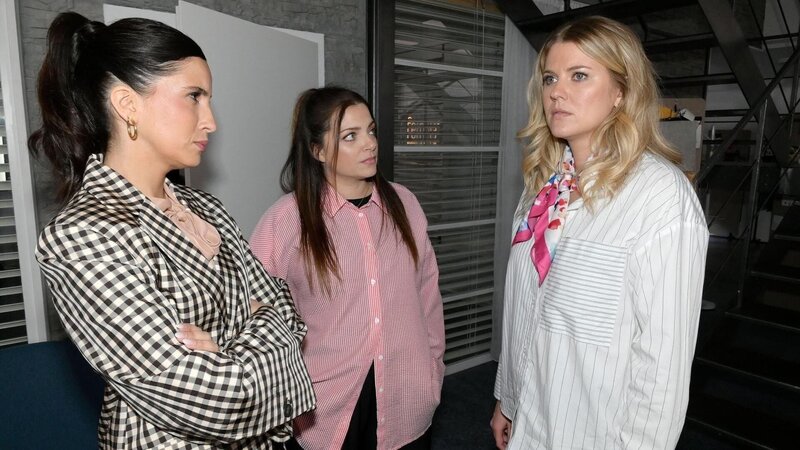 • Alicia (Josefin Bressel, r.) muss einsehen, dass sie einen großen Fehler in der Agentur begangen hat. Links Laura (Chryssanthi Kavazi), in der Mitte Emily (Anne Menden).