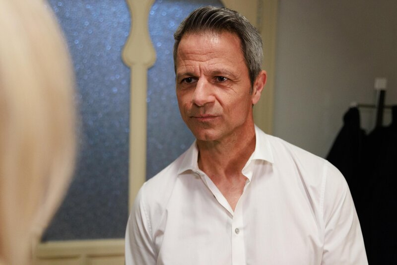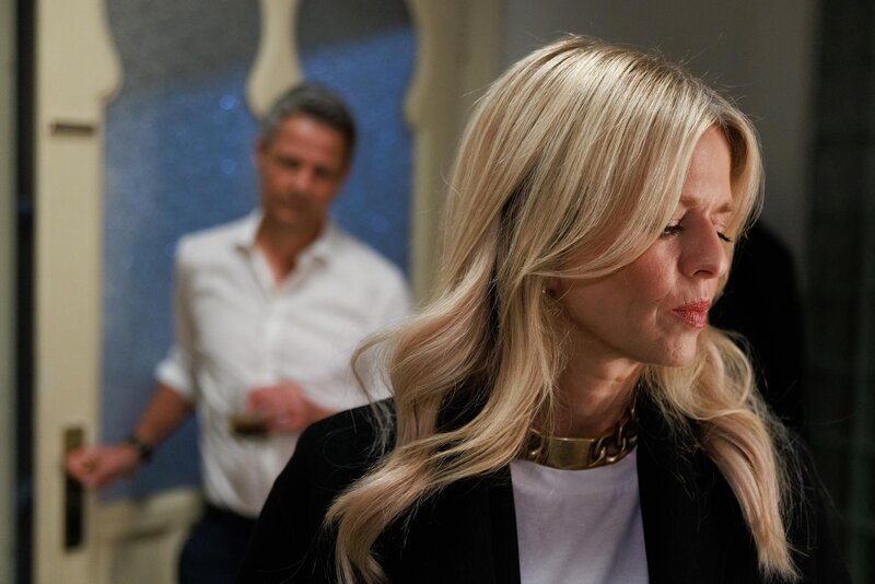Patrizia (Miriam Lahnstein) lässt Benedikt (Jens Hajek) kämpferisch wissen, dass sie sich von ihm nicht unterkriegen lässt.