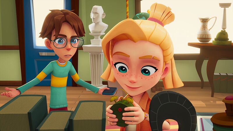 Leo und Sophie kommen im Kuriositätenladen ihrer Oma Clara an.