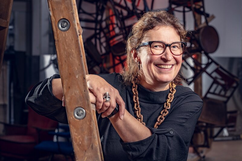 SchrottUp Staffel 1 Folge 1 Spreitenbach (AG). Mit Sonja Bantli und Fabian Bolliger v.l. Sonja Bantli (Künstlerin), Karin Bertschi (von der Entsorgungsstelle Spreitenbach), Fabian Bollinger (Künstler) 2024