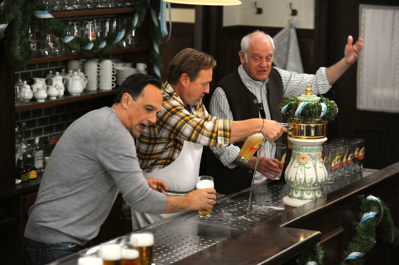 • Gregor fehlen ein paar Sekunden, um einen neuen Rekord im Halbe zapfen aufzustellen. Von links: Mike (Harry Blank), Gregor (Holger Matthias Wilhelm) und Joseph (Michael Vogtmann).