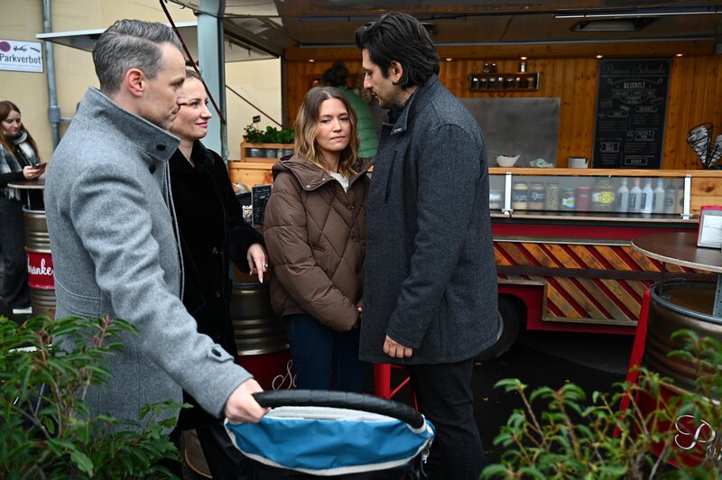 Isabelle (Ania Niedieck) ist unwohl, als Nathalie (Amrei Haardt) Maximilian (Francisco Medina) erlaubt, Diego zu sehen. Links Kilian (Marc Dumitru)