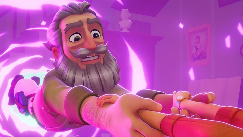• Herrmann hält sich verzweifelt fest. Er ist in Gefahr, erneut durch das Portal gesogen zu werden.