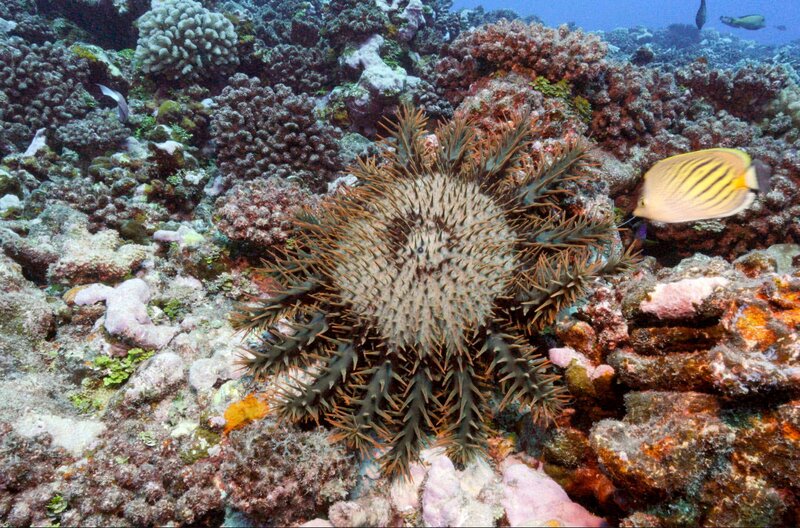 Dornenkronenseesterne machen Jagd auf Korallen und können in kürzester Zeit ganze Riffe zerstören.