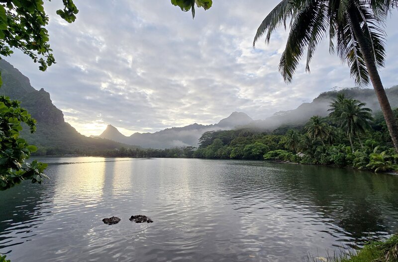 Die Baie d'Opunohu ist eine von zwei langen Buchten, die bis ins Landesinnere der Vulkaninsel Moorea reichen.