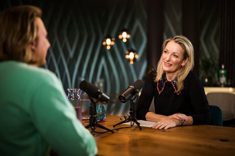 Monika Gruber und Gernot Haas während ServusTVs „Die Gruaberin - Vodcast“ in Salzburg, Österreich.