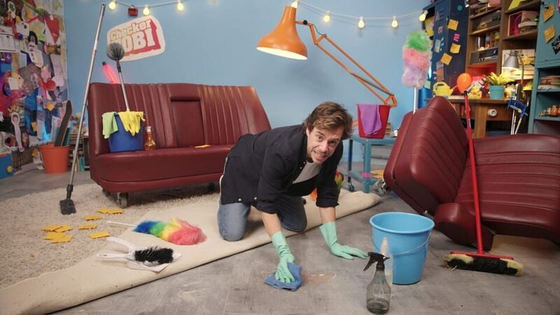 Checker Tobi macht sauber und stellt dabei die Checkerbude auf den Kopf.